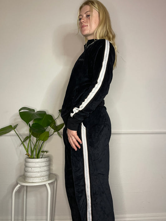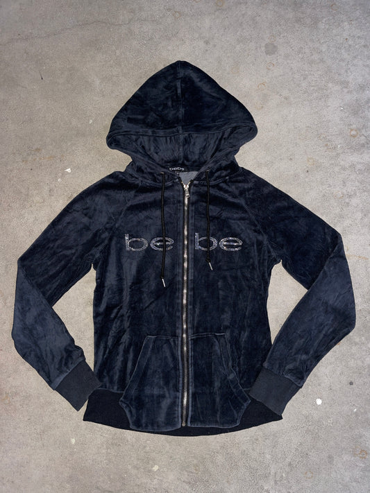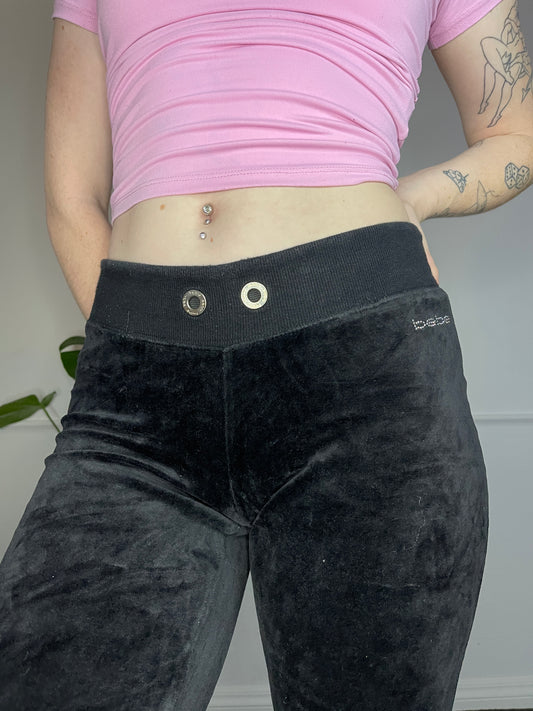 BEBE Y2K Bedazzled Velour Flared Track Suit