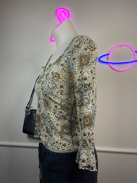 AQUA BLUE Bell Sleeve Paisley Print Top